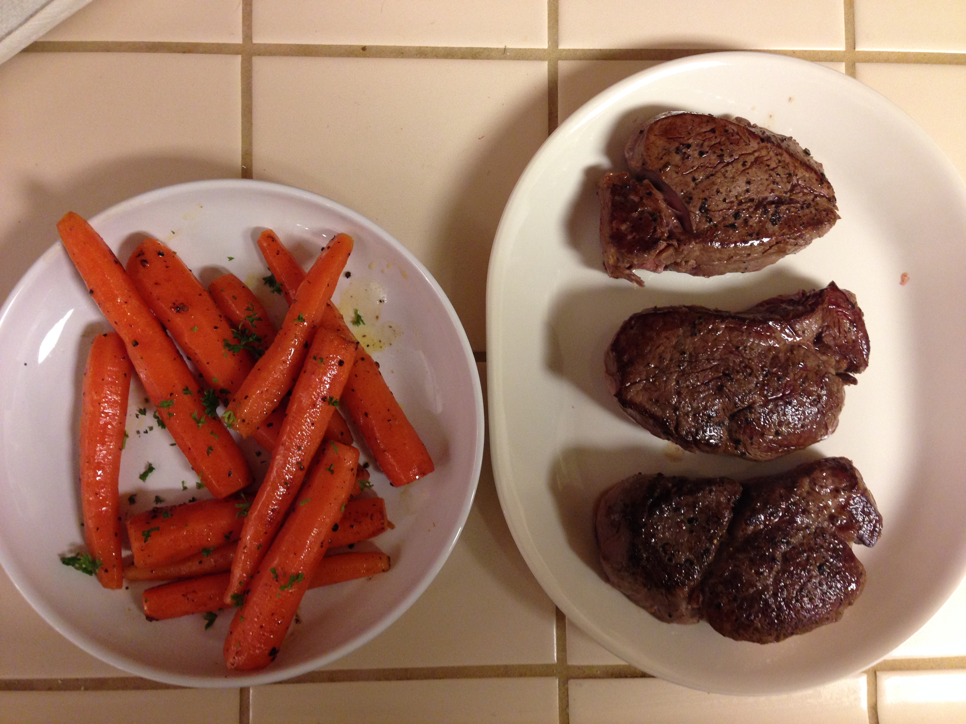 Note: As I have a single circulator and bath, I prep the veggies ahead of time, after they are cooked, I chill the bag into ice water then store in the fridge. When the meat is ready, I take the bag out, and immerse it 1 minute into the hot bath, then sauté the veggies