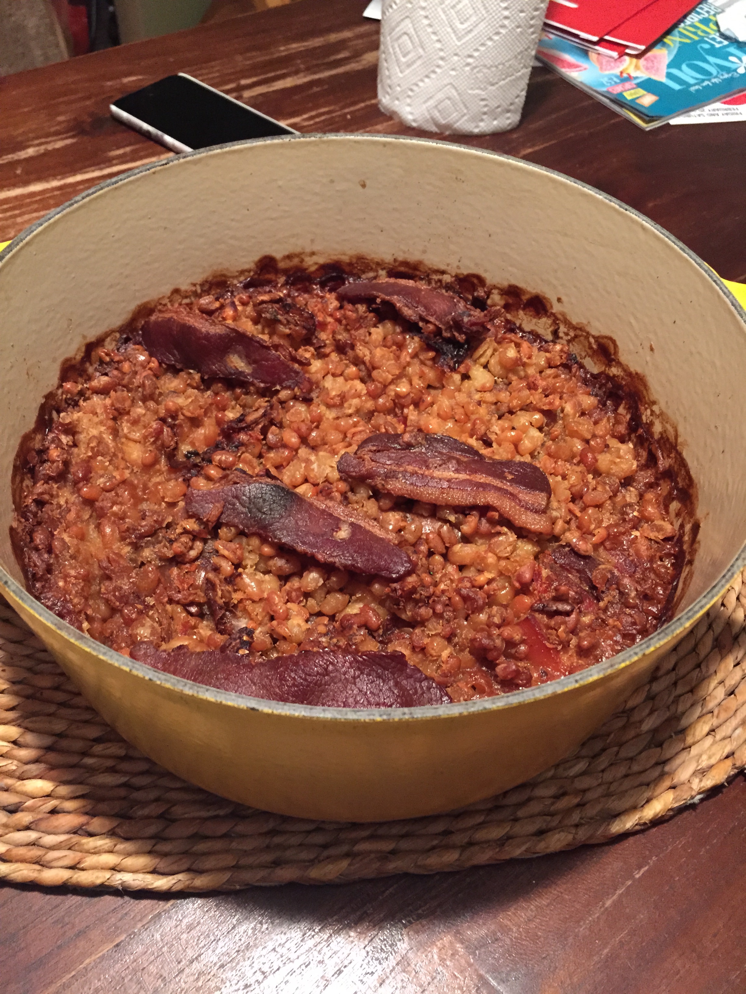 - Take the cassoulet out and cover (I usually do this the evening before the meal)