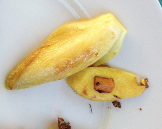- Lay the endive flat, add a slice of ginger on top and a slice of orange zest