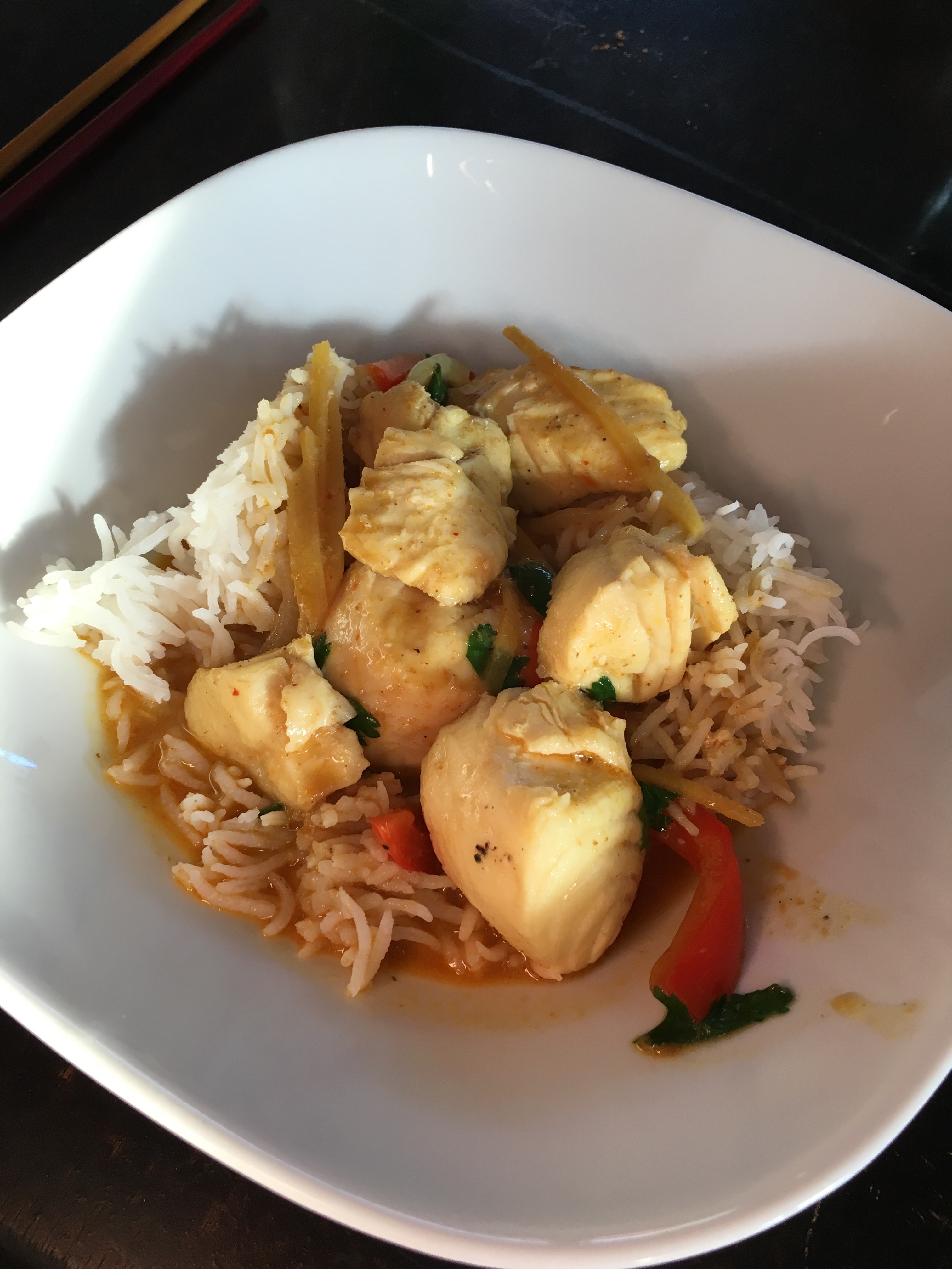 - Add the curry paste, curry powder and ginger and cook for another couple of minutes
