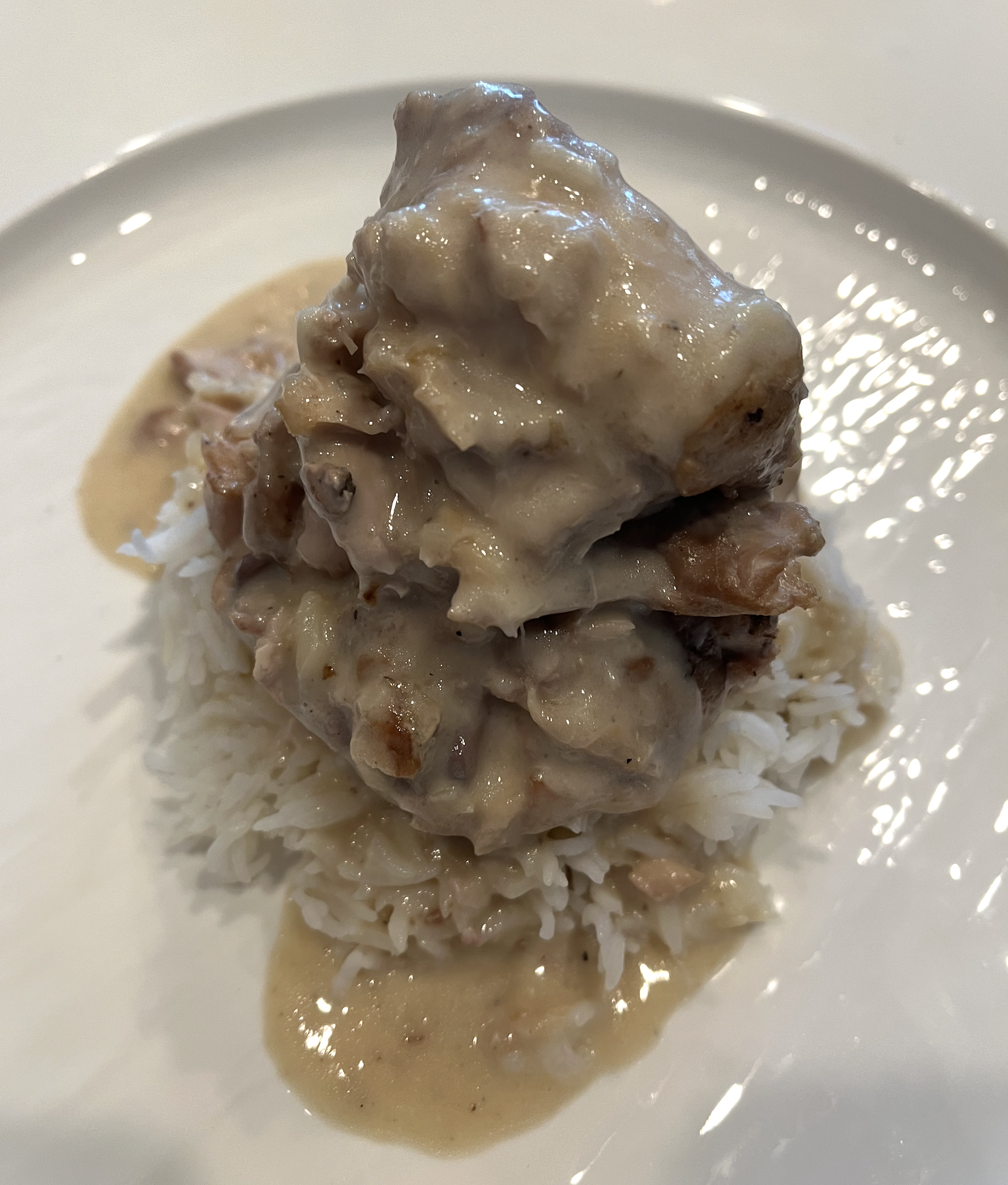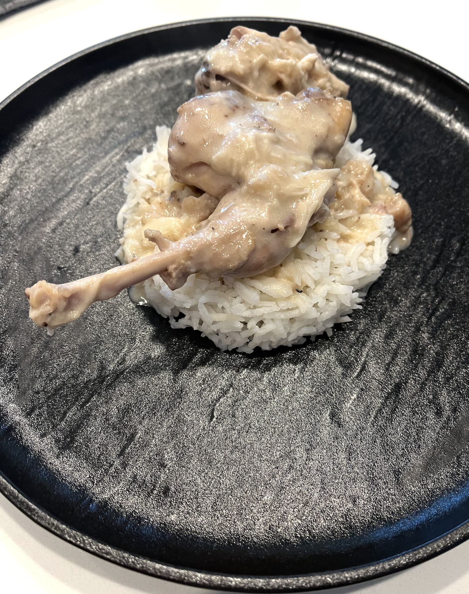 Add the rabbit to the pan, brown the parts a bit to cook the corn starch