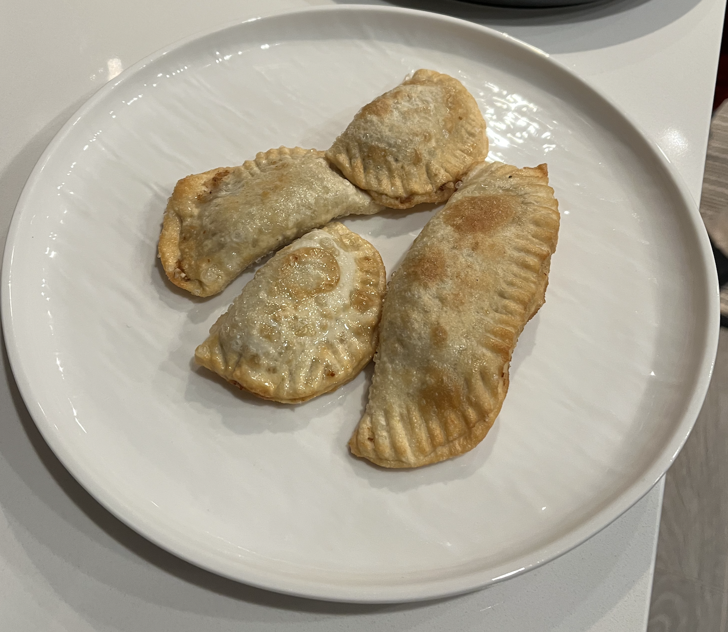 In a pan, heat some oil (medium heat), about 1 cm, when the oil is hot, place the dumplings into the pan, a few minutes on each side, then set aside and finish frying all the dumplings.