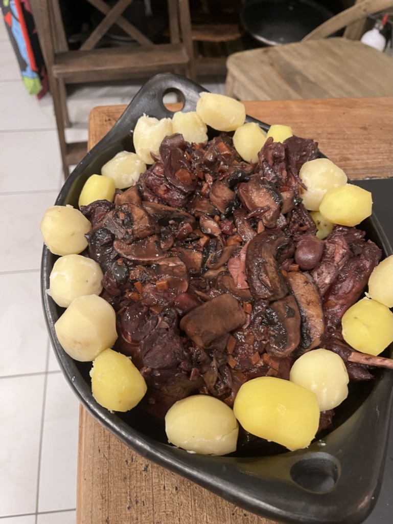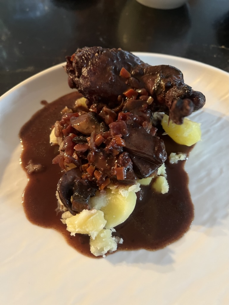 Until know I traditionally did my rabbit using white wine, this is a spin on it that traditional recipe using red wine. Turned out quite good.