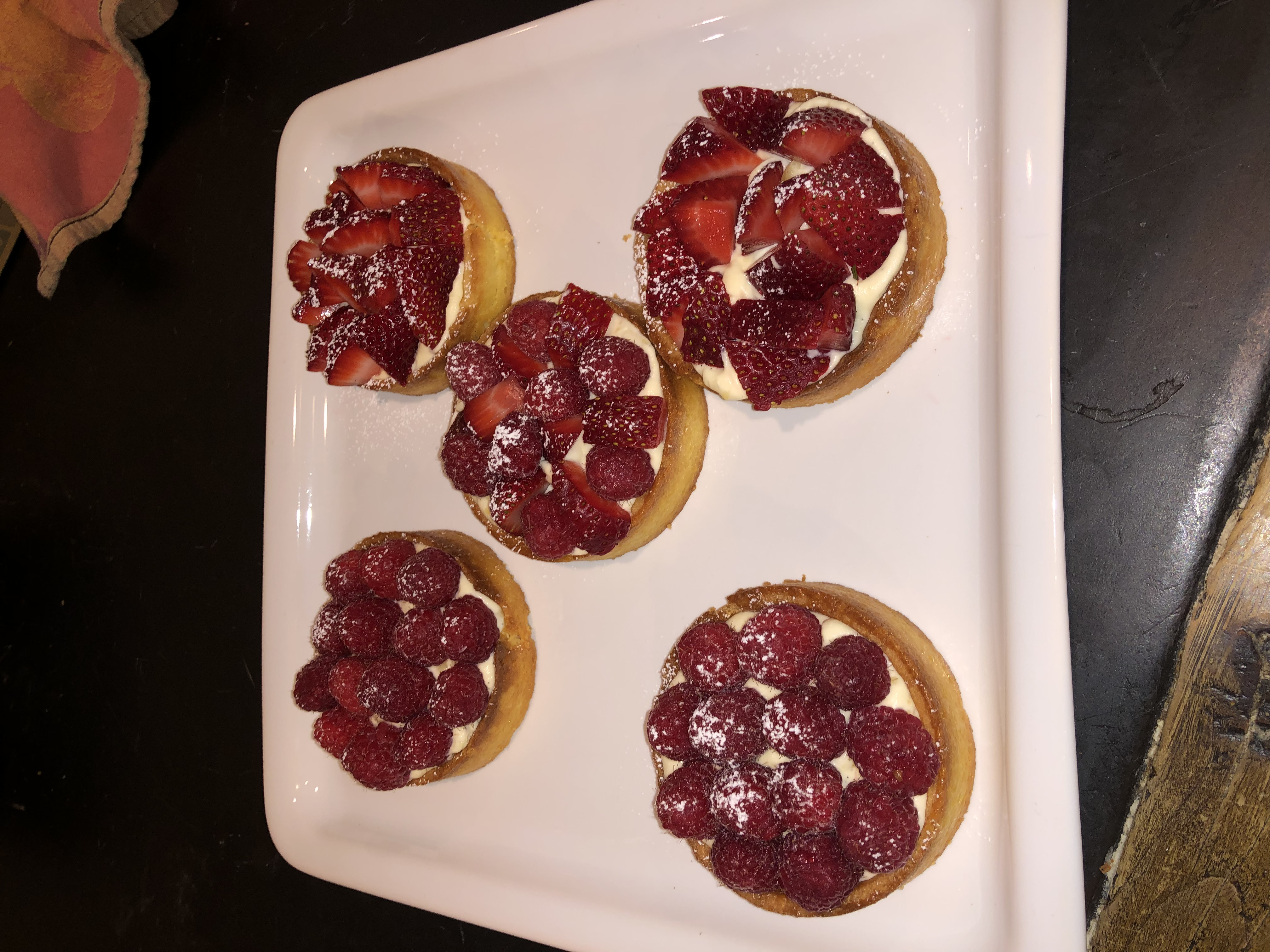 Add a creme patissiere, mix some sugar, mascarpone cream and heavy cream, add some berries and you get a nice tartelette.