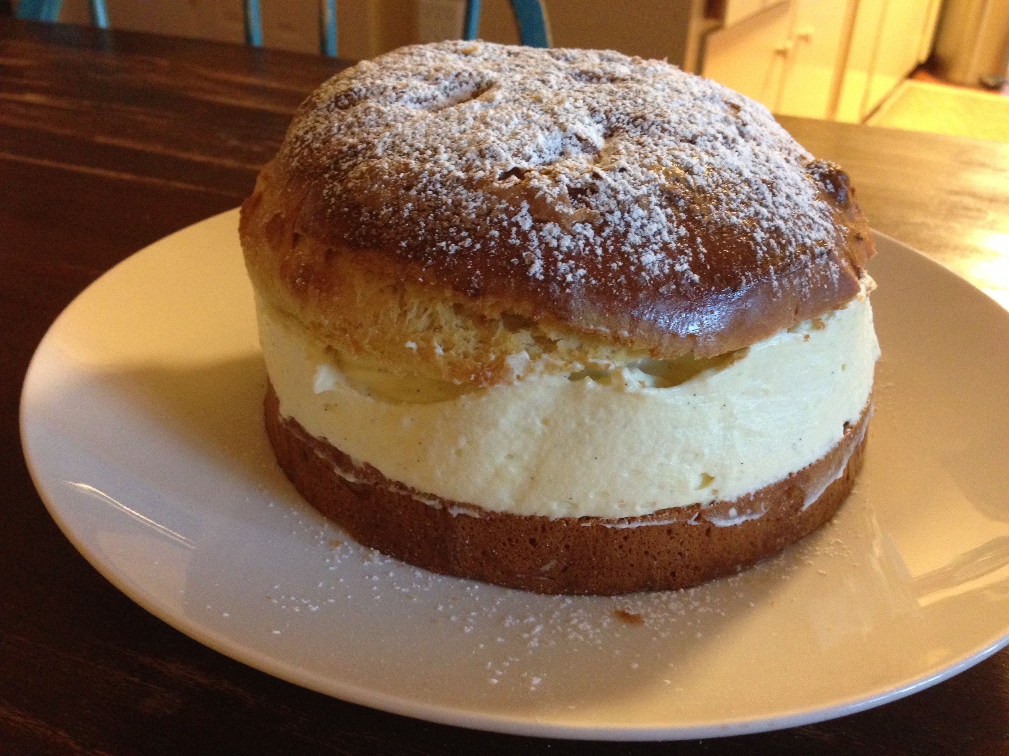 - Cut the brioche in two (if the dough rises too much remove a bit in the middle)